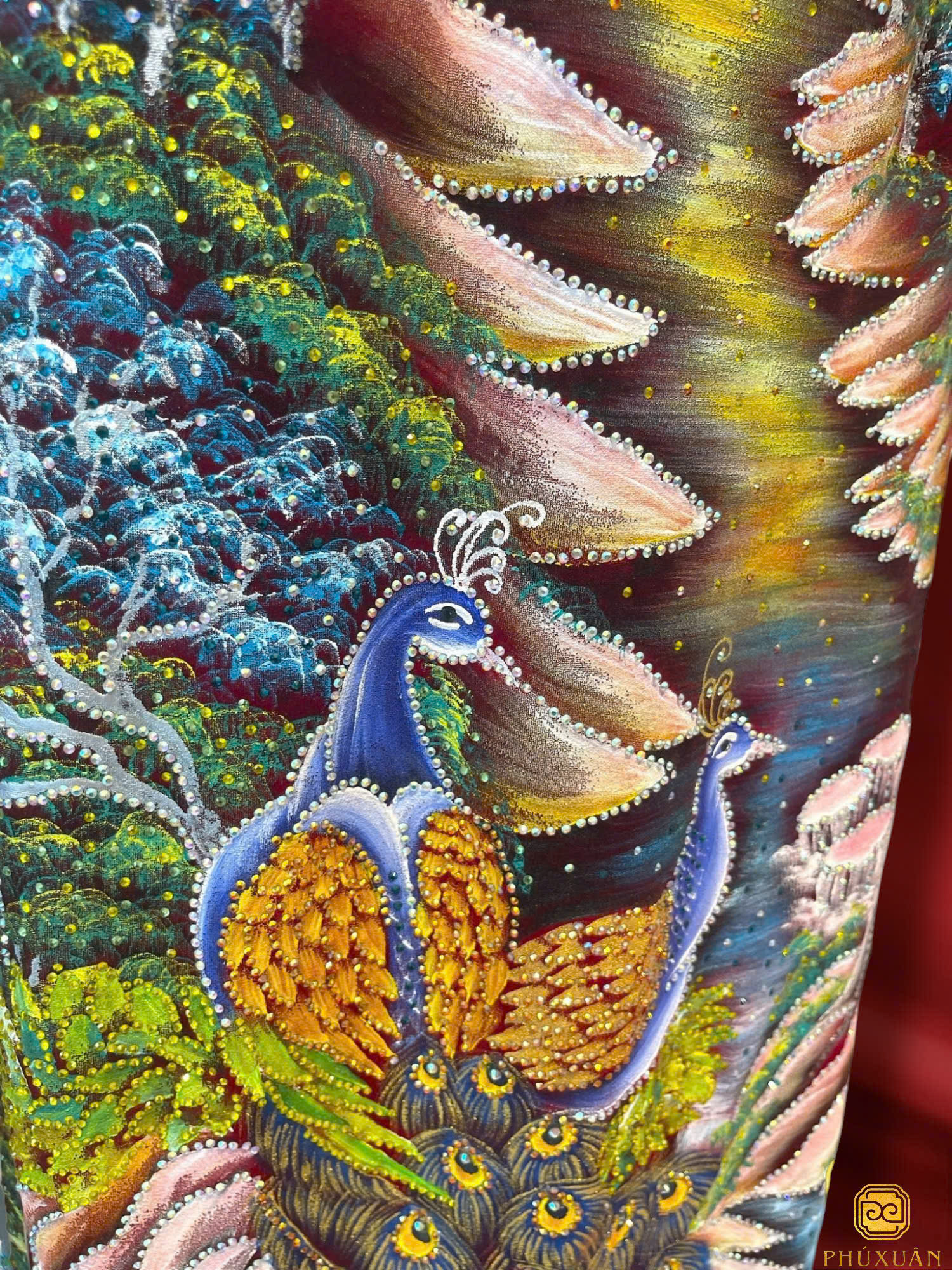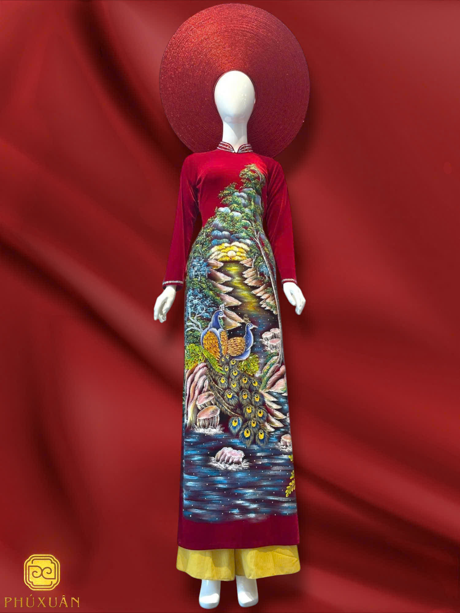 Từng nét cọ được họa sĩ khắc họa uyển chuyển, tái hiện hình ảnh hoa cỏ, mây trời và ánh nắng mùa hạ bằng gam màu trong trẻo, mềm mại. Trên nền lụa tơ cao cấp, mỗi chi tiết đều toát lên vẻ thanh thoát và sự sống động của thiên nhiên, giúp người mặc như hòa mình vào không gian trong lành, tươi sáng. “Minh Hạ Vân” không chỉ là một chiếc áo dài, mà là bức họa của cảm xúc và tâm hồn Việt – dịu dàng, tinh tế và đầy thi vị.